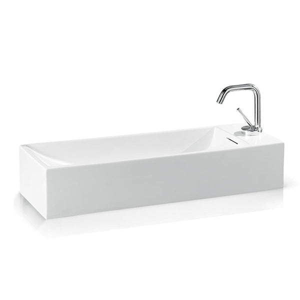- Thin Bridge Rectangle Bathroom Vessel Sink With Right Faucet Hole and Center Drain Hole 29-1/8'' L x 10-3/8'' W x 5-1/2'' H