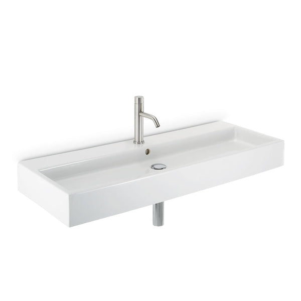 - Bold Tank Wallmount Rectangle Bathroom Sink With Single Faucet Hole and Center Drain Hole 43-1/4'' L x 16-1/2'' W x 4-3/4'' H