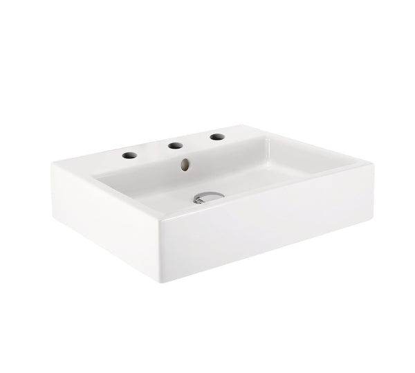 - Bold Tank Wallmount Rectangle Bathroom Sink With Three Faucet Hole and Center Drain Hole 22'' L x 16-3/8'' W x 4-3/8'' H
