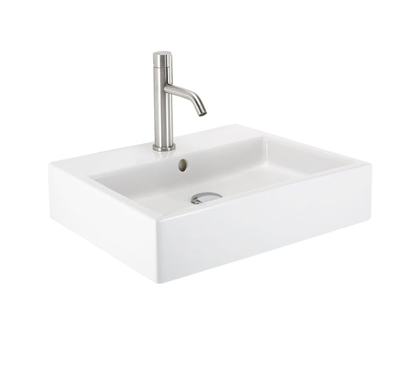 - Bold Tank Wallmount Rectangle Bathroom Sink With Single Faucet Hole and Center Drain Hole 22'' L x 16-3/8'' W x 4-3/8'' H
