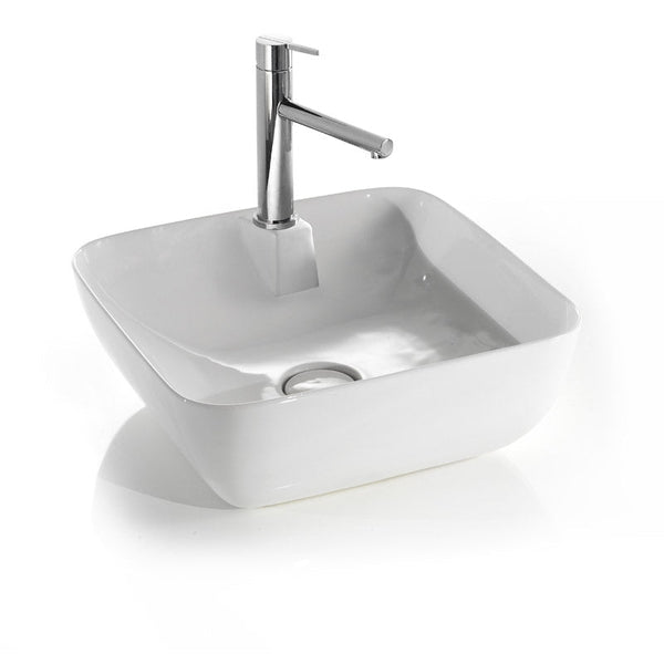- Square Ceramic Bathroom Vessel Sink With Single Faucet Hole and Drain Hole 16-3/4'' L x 16-3/4'' W x 6-1/8'' H