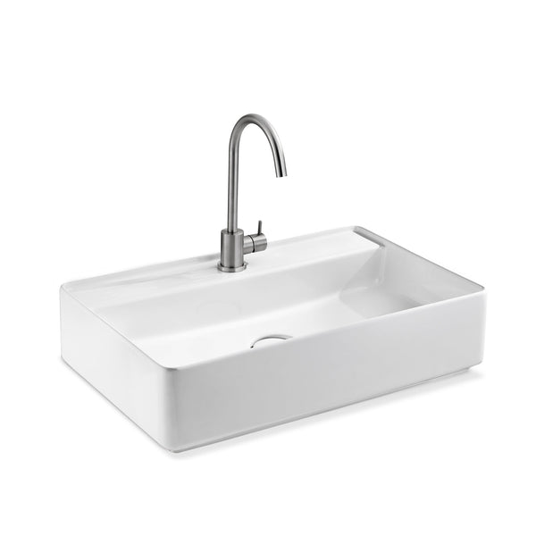 - Fly Ceramic Wallmount Rectangle Bathroom Sink With Single Faucet Hole and Drain Hole 23-5/8'' L x 15'' W x 5-7/8'' H
