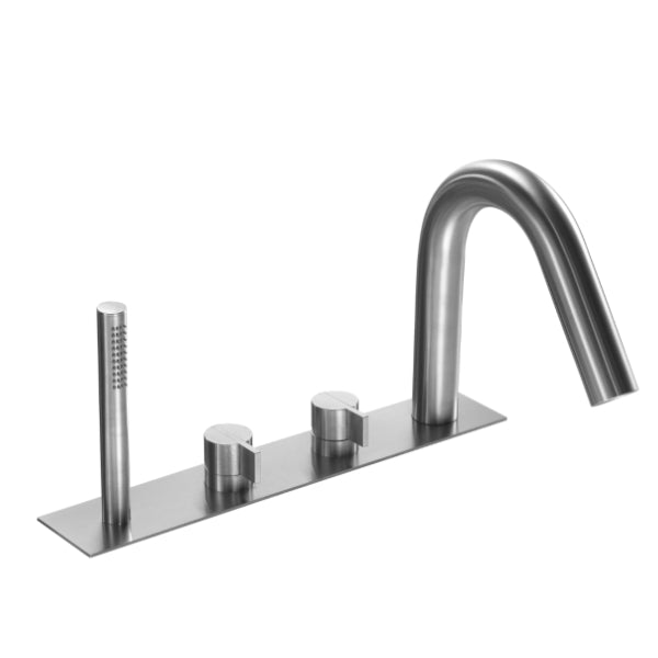 - Insert Deck Mount Four-Hole Two Handle Bathtub Faucet with Hand Shower with 4-1/8'' Spout Reach