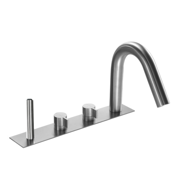 - Insert Deck Mount Four-Hole Two Handle Bathtub Faucet with Hand Shower with 8'' Spout Reach